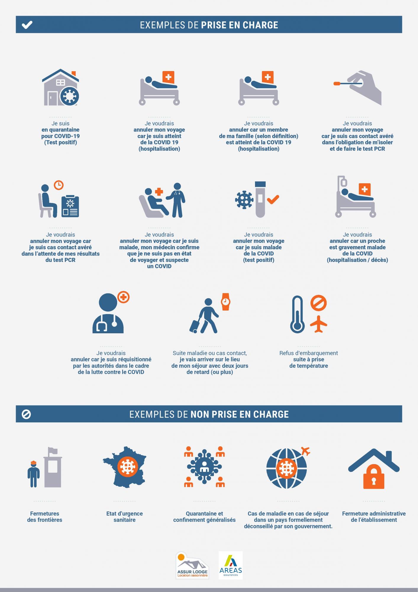 En cas de mesures gouvernementales vous empêchant de prendre votre location (confinement, restriction kilométriques etc...), Cimes et Neige vous rembourse intégralement votre séjour. Pour vous prémunir également du virus en tant que maladie, vous pouvez souscrire à l'assurance annulation de notre partenaire, dont vous trouverez les conditions ci-dessous. A noter : la fermeture éventuelle des remontées mécaniques ne constitue pas un motif d'annulation et de remboursement.