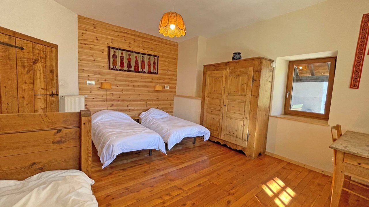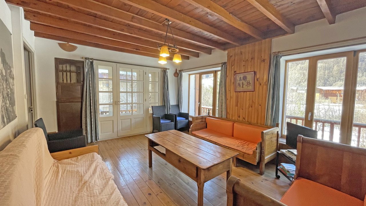Un séjour avec télévision. 3 chambres avec placards, 2 Lits doubles, 4 Lits simples et un canapé convertible. Une salle de bains avec 2 douches équipée d'une machine à laver et des WC. L'appartement dispose d'un casier à skis, d'un grand jardin et de 3 places de parking.