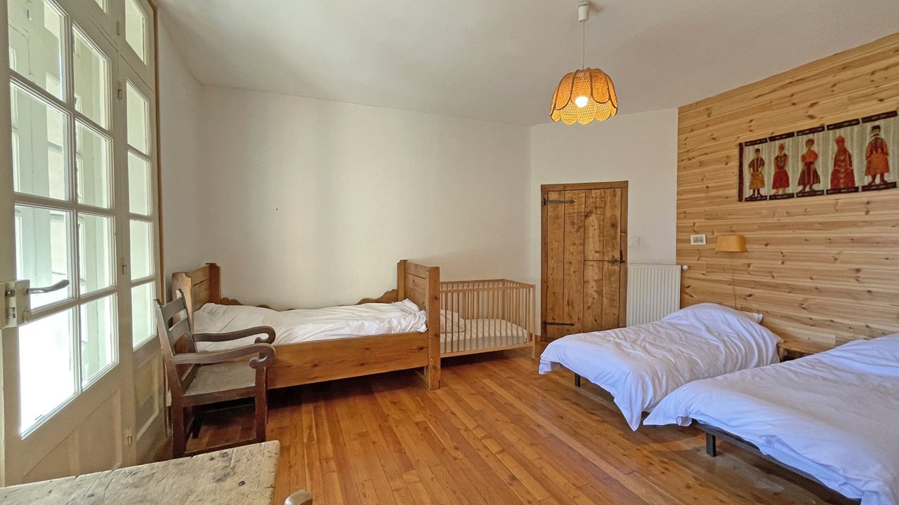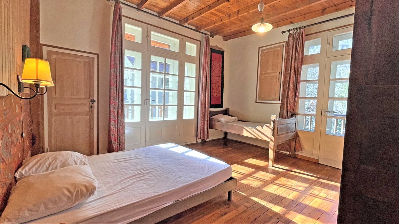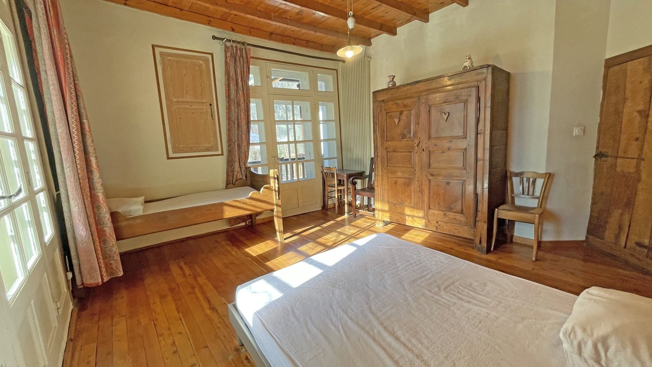 La maison du XVIIème siècle a gardé son caractère authentique. Elle est entourée de balcons sur 3 façades. L’appartement loué est totalement indépendant au 1er étage, il a 2 accès autonomes, l'un côté jardin, l'autre côté chemin.