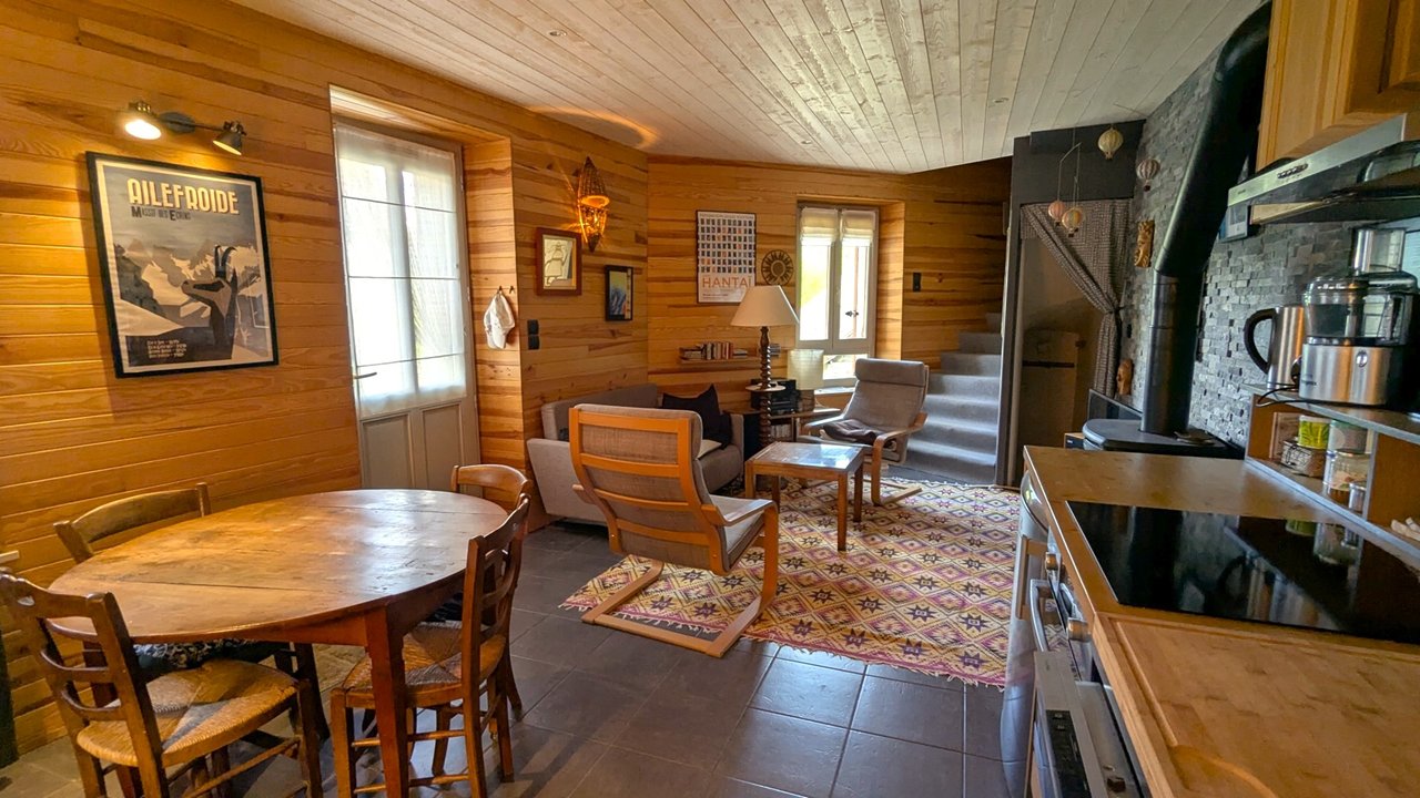 Plongez dans l’ambiance chaleureuse et typique du vieux Vallouise en séjournant dans cet appartement de 60m², niché au cœur d’une maison de village pleine de caractère. Ce cocon douillet, réparti sur trois niveaux, peut accueillir jusqu’à 4 personnes. Il dispose de deux chambres confortables, d’un séjour chaleureux agrémenté d’un poêle à bois, d’une cuisine entièrement équipée, d’une salle de douche et de deux WC. L’entrée se fait directement par le rez-de-chaussée. Son ambiance boisée et sa décoration soignée en font un véritable refuge après une journée en plein air.