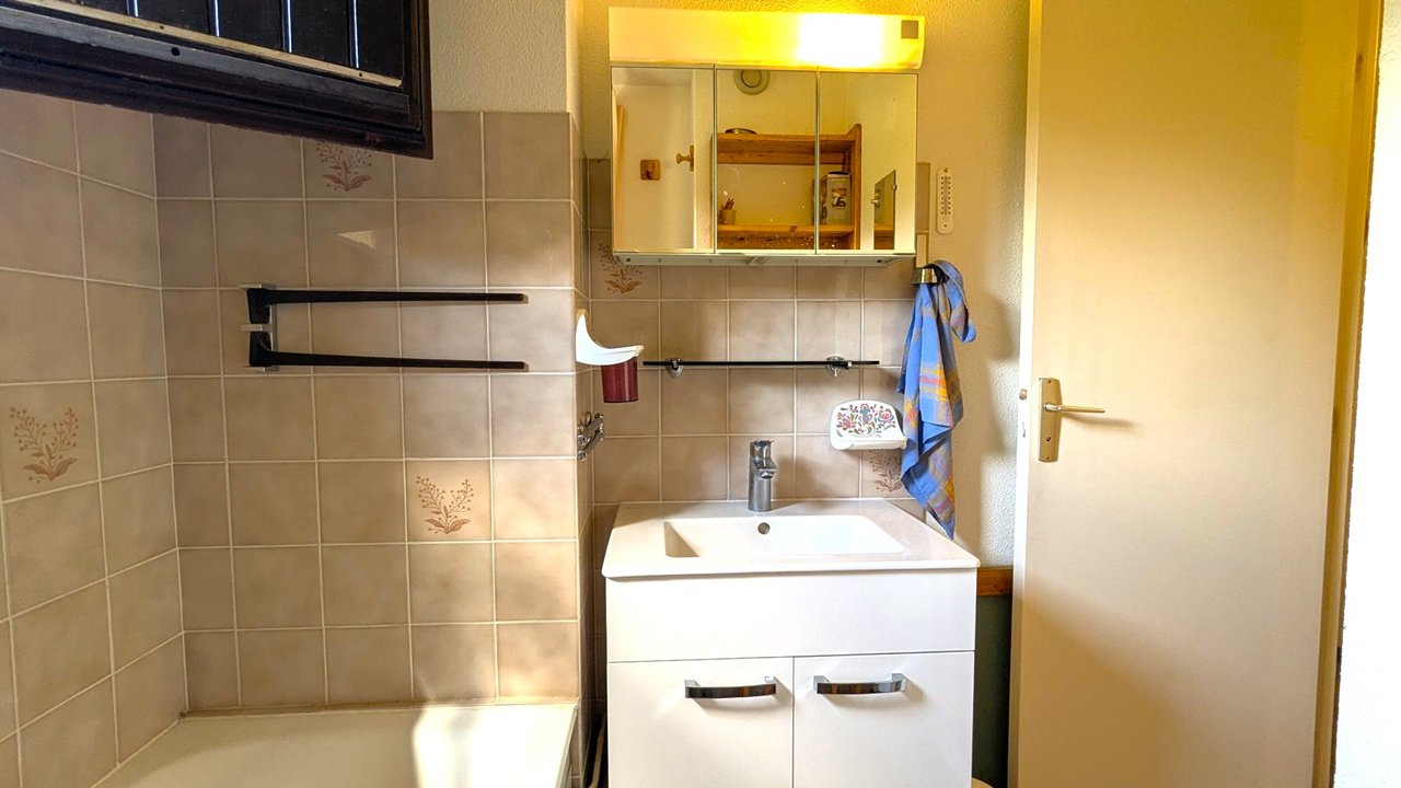 Il se compose d'une entrée avec placards, d'une chambre avec un lit double en 140x200, une commode et des étagères , une salle de bain avec baignoire, un WC séparé.