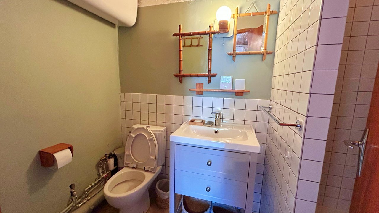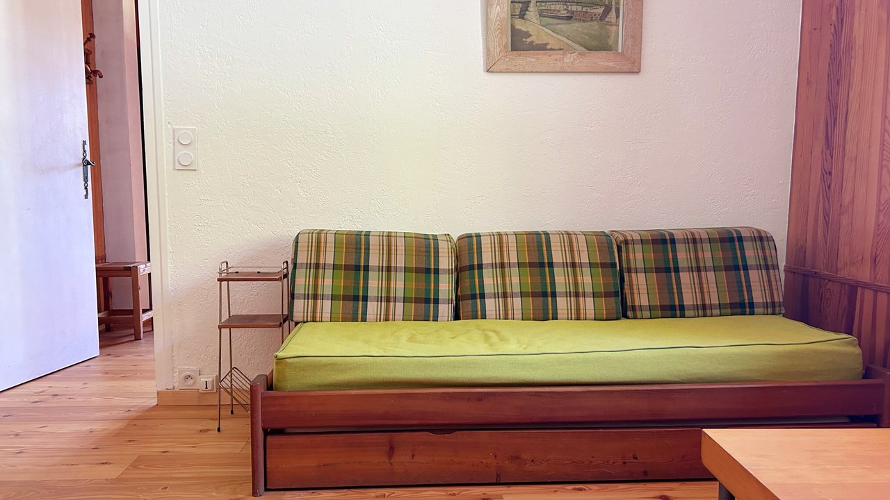 L’appartement dispose d’une chambre avec lit double (140x190) et d’un salon convivial équipé de deux canapés pouvant servir de lits simples, parfait pour accueillir une petite famille ou un groupe d’amis. La cuisine, entièrement refaite et équipée, allie modernité et praticité, tandis que la salle de douche avec WC complète agréablement l’ensemble.