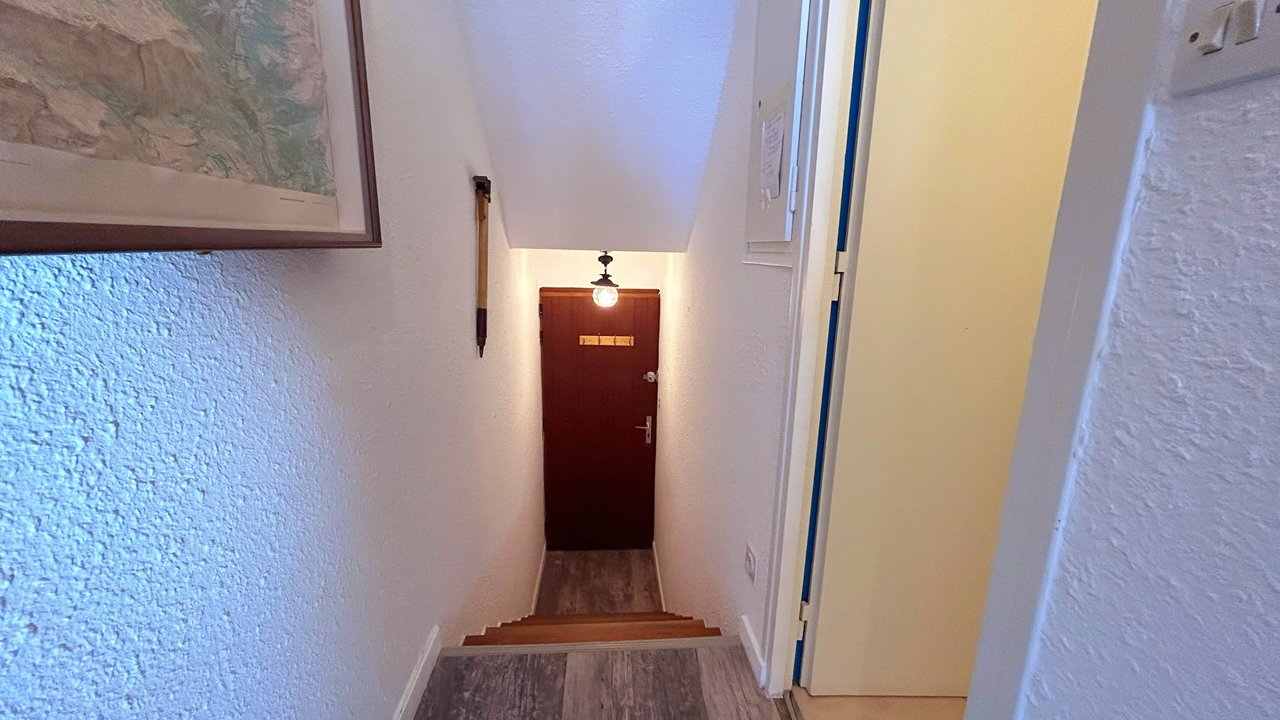 Il se compose d'une entrée avec un escalier, une salle d'eau comprenant une douche,un meuble vasque,un placard et un WC. Le séjour avec un 2 canapés-lit deux places, équipé d'une TV, la cuisine est équipée d'un réfrigérateur, un four, une hotte aspirante, une bouilloire, un micro-ondes, une cafetière électrique Senseo, plaque de cuisson à induction... Un agréable balcon exposée plein SUD, pour profiter d'un repas ou d'un moment détente au soleil. Un casier à ski. Un parking se situe au pied de la résidence.