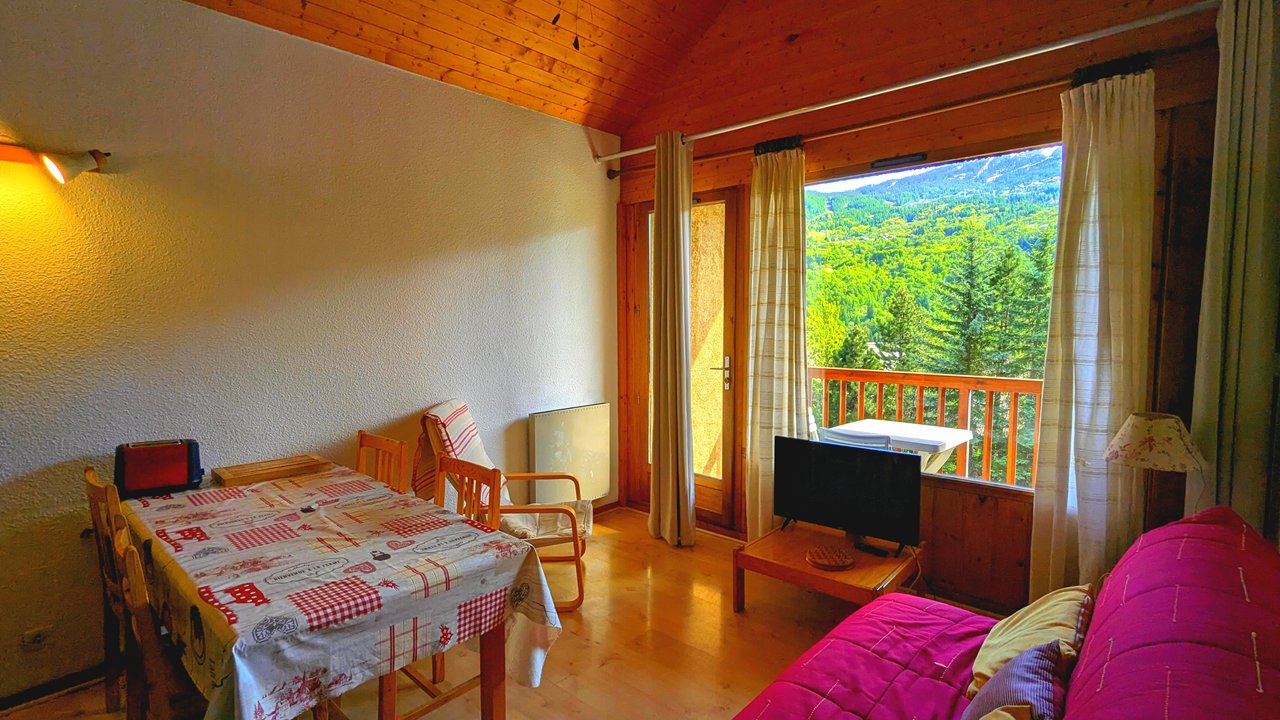 Dans la résidences Valérianes, Appartement n°10, agréable studio avec coin montagne, disposant d'une terrasse avec vue sur les montagnes.