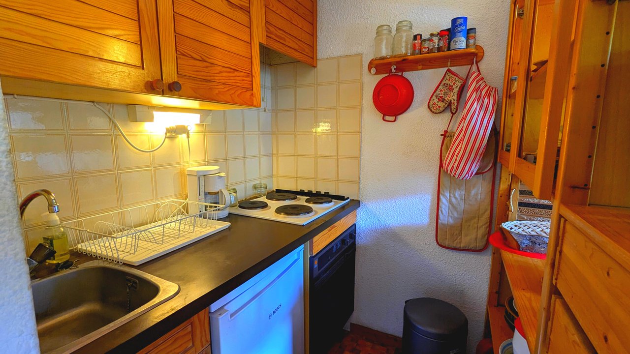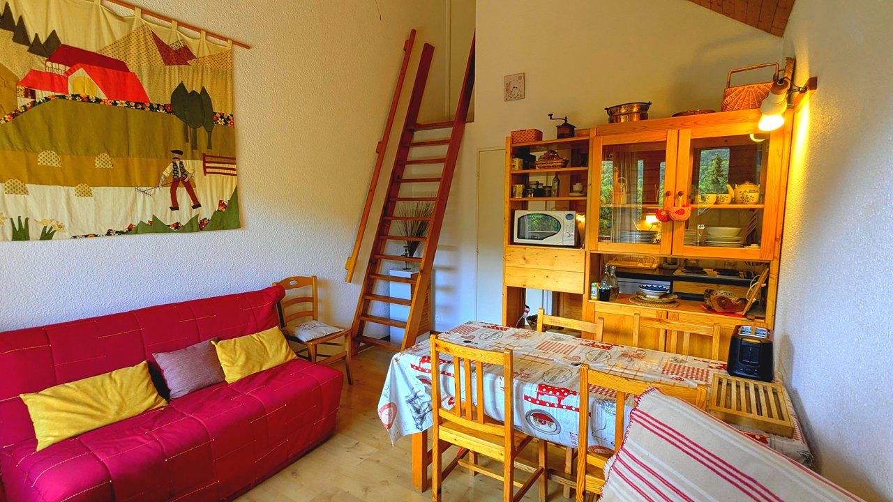 Dans la résidences Valérianes, Appartement n°10, agréable studio avec coin montagne, disposant d'une terrasse avec vue sur les montagnes.