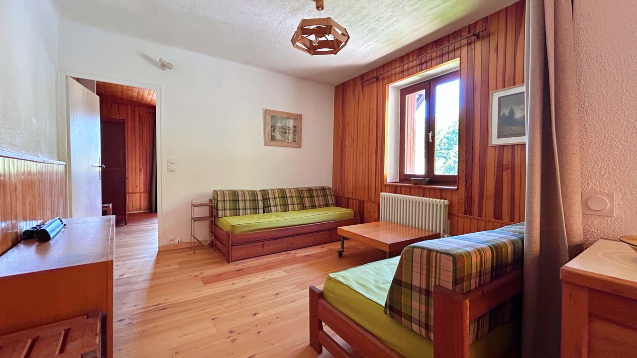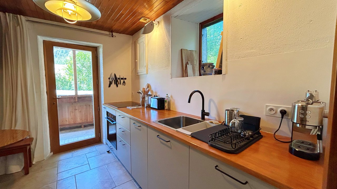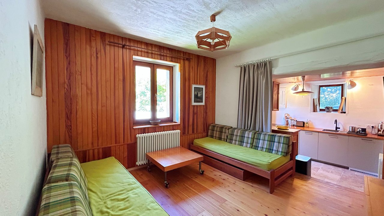 L’appartement dispose d’une chambre avec lit double (140x190) et d’un salon convivial équipé de deux canapés pouvant servir de lits simples, parfait pour accueillir une petite famille ou un groupe d’amis. La cuisine, entièrement refaite et équipée, allie modernité et praticité, tandis que la salle de douche avec WC complète agréablement l’ensemble.