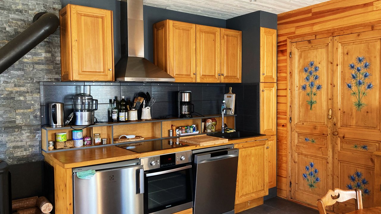 Plongez dans l’ambiance chaleureuse et typique du vieux Vallouise en séjournant dans cet appartement de 60m², niché au cœur d’une maison de village pleine de caractère. Ce cocon douillet, réparti sur trois niveaux, peut accueillir jusqu’à 4 personnes. Il dispose de deux chambres confortables, d’un séjour chaleureux agrémenté d’un poêle à bois, d’une cuisine entièrement équipée, d’une salle de douche et de deux WC. L’entrée se fait directement par le rez-de-chaussée. Son ambiance boisée et sa décoration soignée en font un véritable refuge après une journée en plein air.
