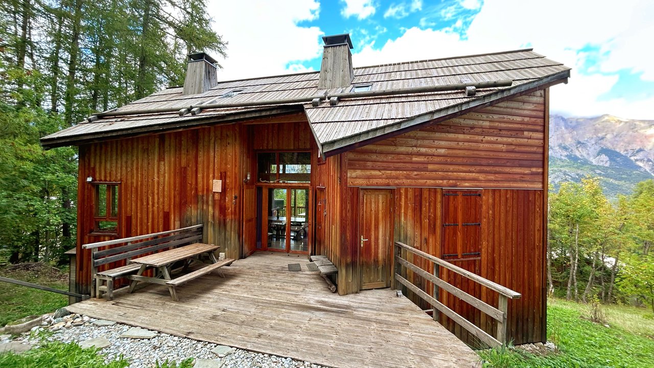 Ce chalet moderne et chaleureux de 150 m², entièrement habillé de bois, peut accueillir jusqu’à 12 personnes. Il est situé à Prey d’Aval, au bout de Puy-Saint-Vincent, dans un écrin de verdure au bord de la forêt, avec une vue imprenable sur la vallée de Vallouise.
