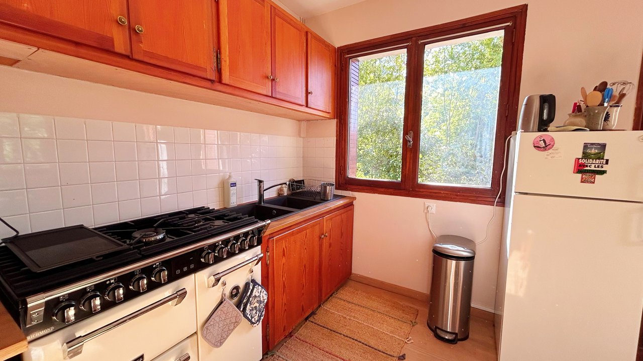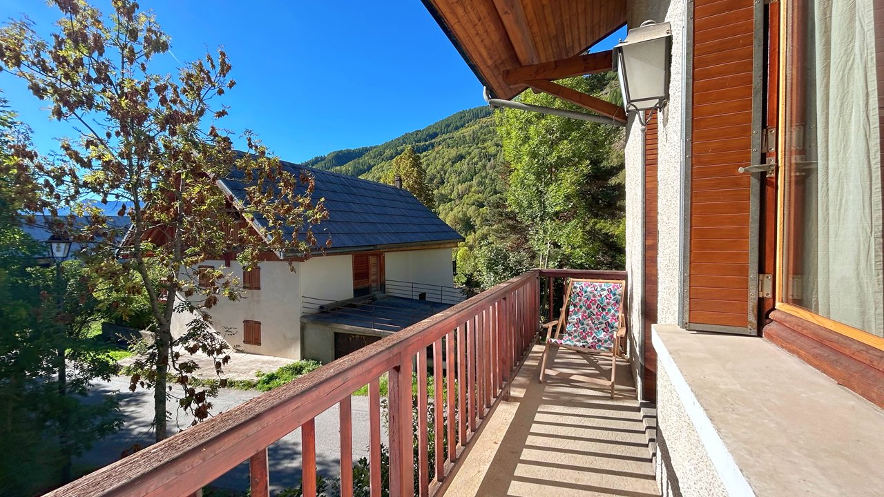 La pièce de vie rassemble une cuisine ouverte très bien équipée, une salle à manger lumineuse et un salon confortable où trône un poêle, idéal pour se retrouver après une journée de montagne. Cette pièce donne accès à un balcon pour profiter du soleil et de l’air pur des Hautes-Alpes. À l’étage, une chambre double dispose également de son propre balcon privatif. La maison compte en tout cinq chambres : trois équipées de lits doubles, une avec un lit simple et une dernière avec un lit double et un lit simple, ce qui permet une organisation flexible selon les besoins. Deux salles de douche modernes complètent les espaces de nuit, ainsi qu’une buanderie avec machine à laver. L’entrée a été pensée pour ranger facilement tout le matériel de sport, qu’il s’agisse de skis en hiver ou de sacs à dos de randonnée en été.