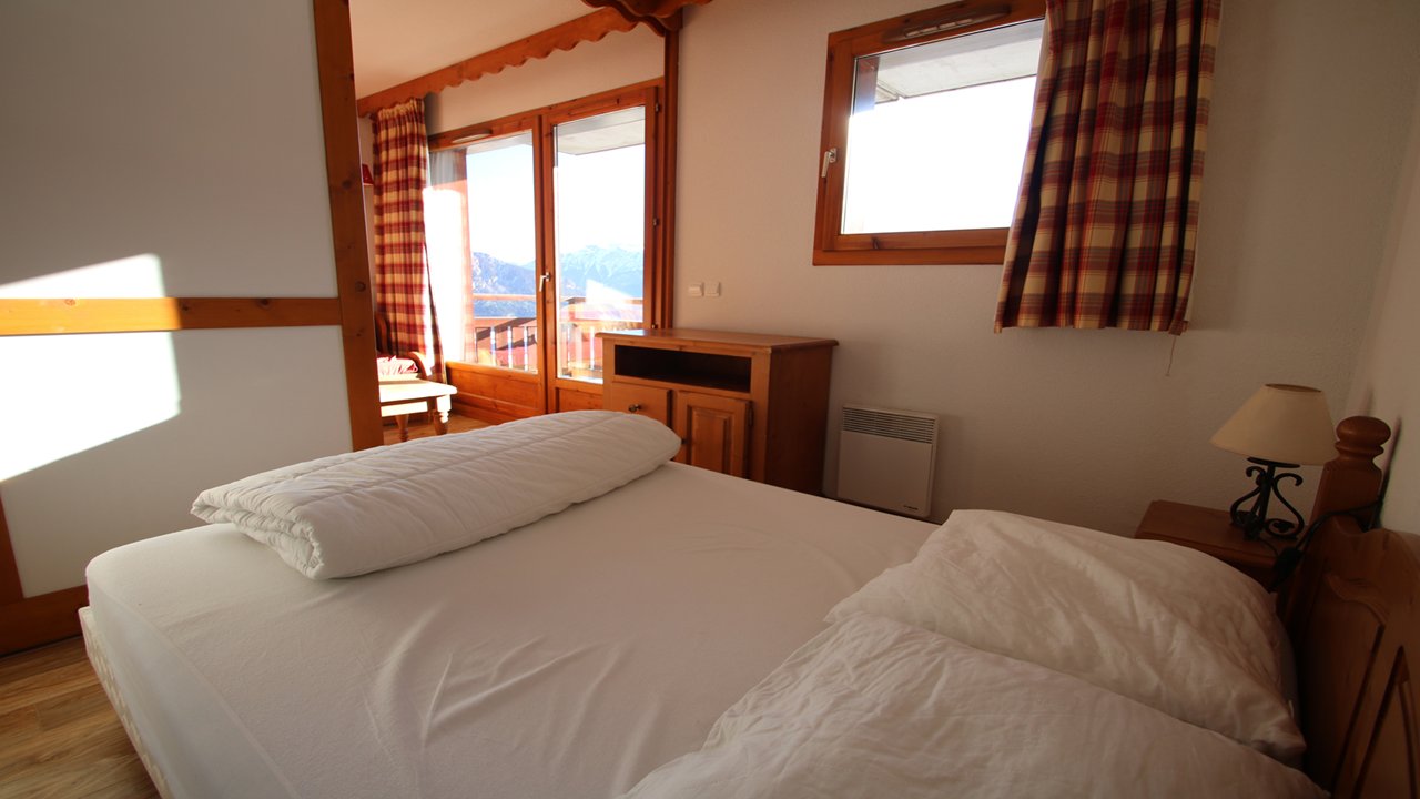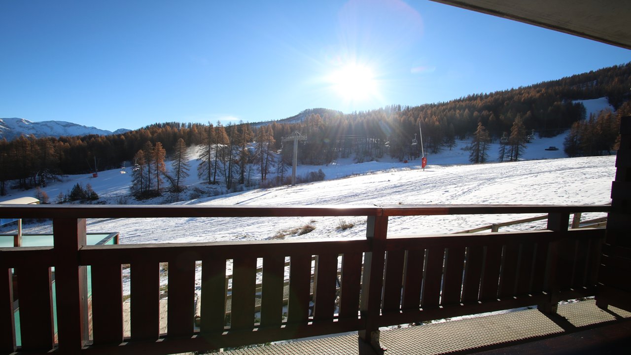 Appartement avec balcon et vue imprenable sur les pistes, meublé et équipé pour des vacances à la montagne pour 4/6 personnes.