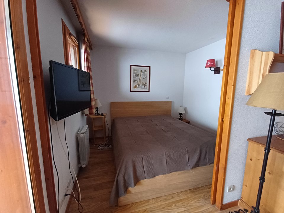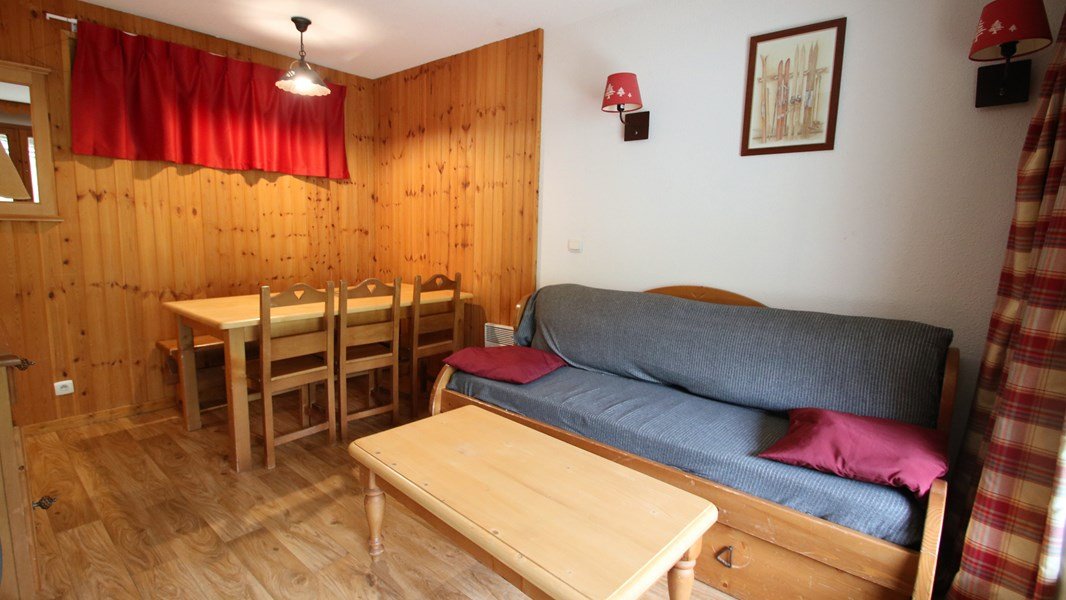 - Séjour avec canapé lit gigogne convertible (2/80x190 ou 1/160x190), table à manger, tv écran plat et balcon équipé d’une table et deux chaises.