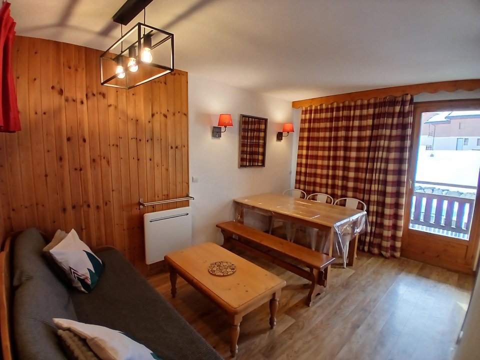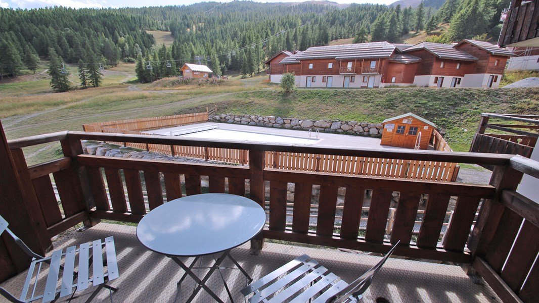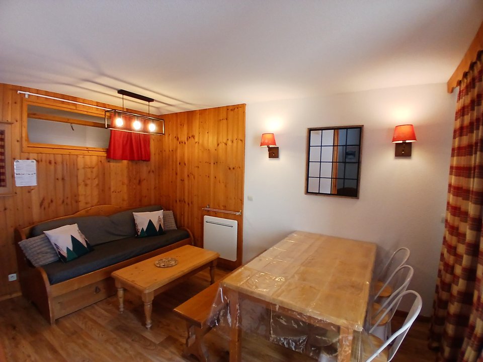 - Séjour avec canapé lit gigogne convertible (2/80x190 ou 1/160x190), table à manger, tv murale écran plat et balcon équipé d’une table et deux chaises.