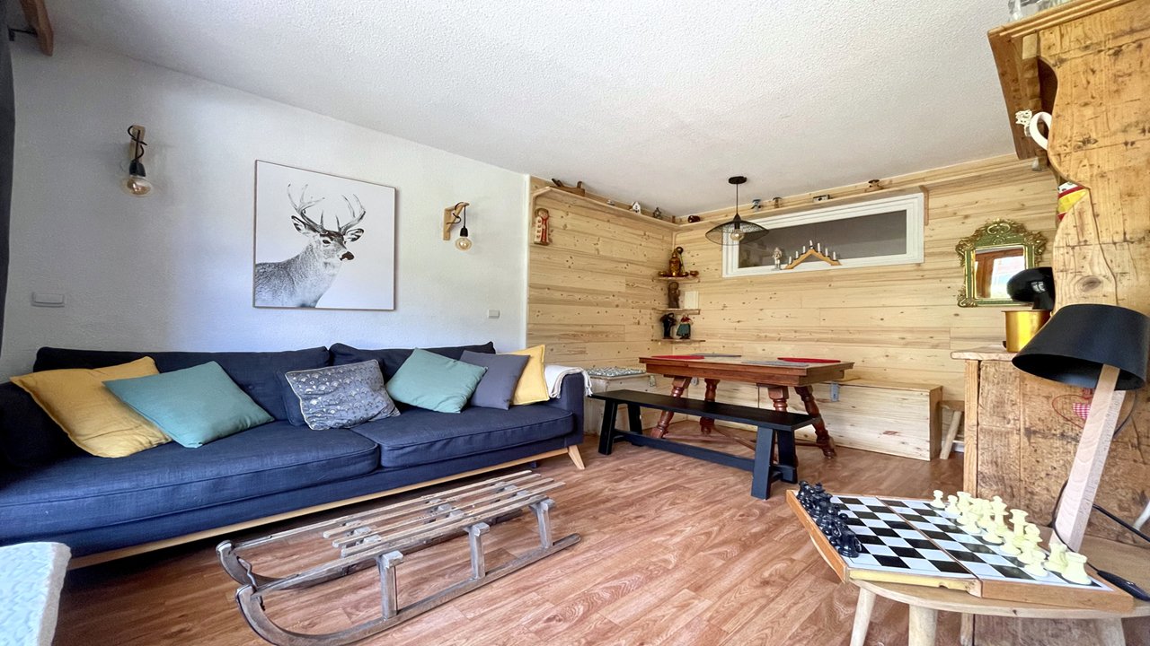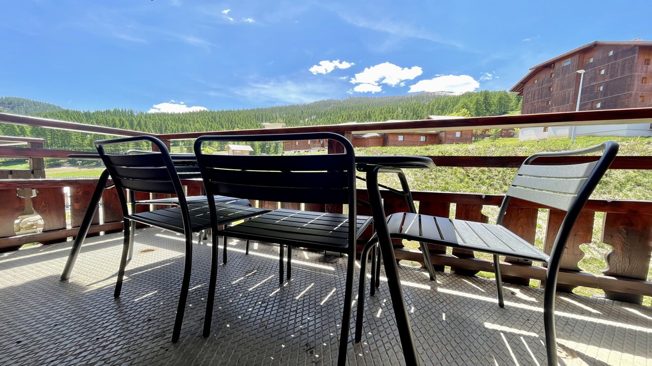 - Séjour avec canapé convertible (2/80x190), table à manger, tv écran plat et balcon équipé d’une table et quatre chaises.