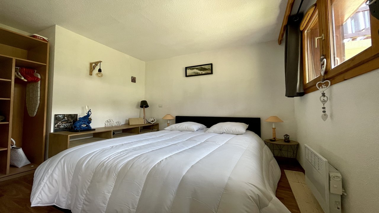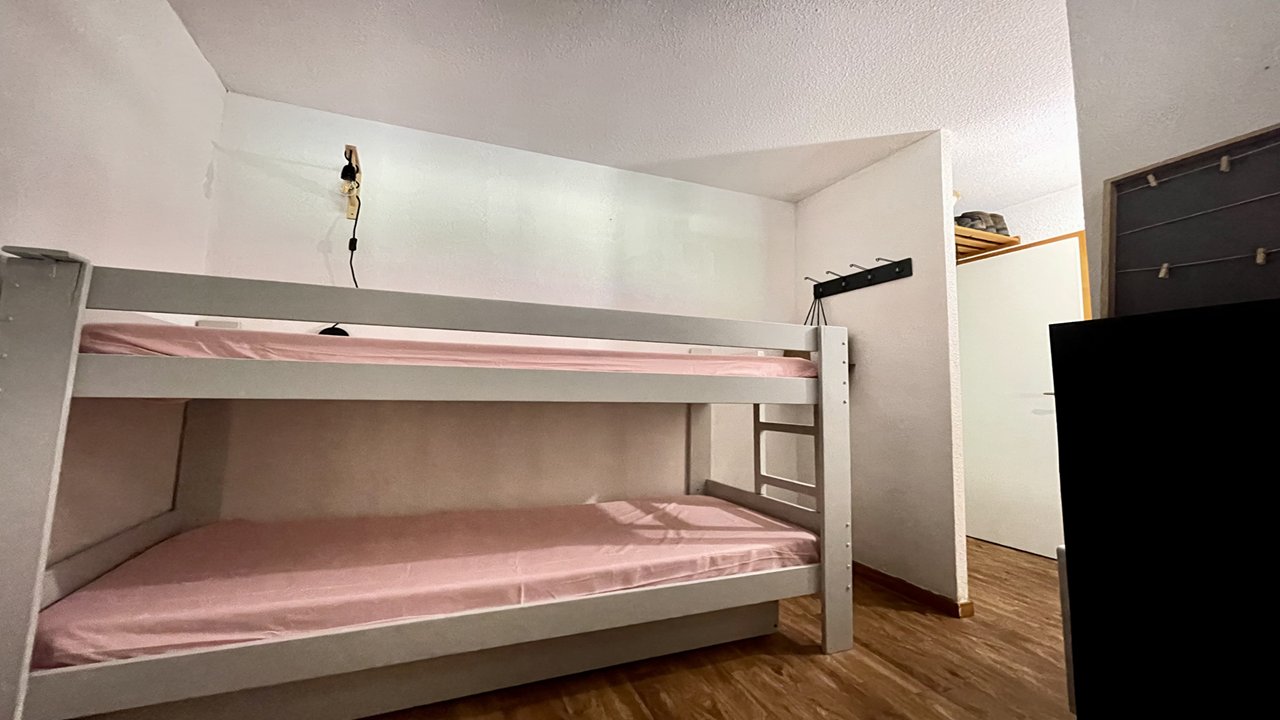 - Couchages : une chambre avec lit double (140x190), une chambre cabine avec deux lits simples superposés (80x190) et étagères de rangement. Lits équipés de couettes et oreillers 30x70.