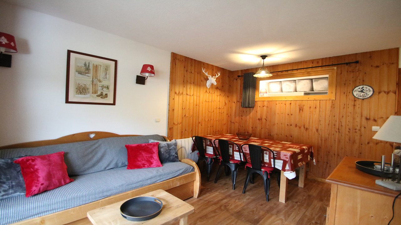 - Séjour décoré avec canapé lit gigogne convertible (2/80x190 ou 160x190), table à manger, tv écran plat + appareils à raclette et fondue à disposition.