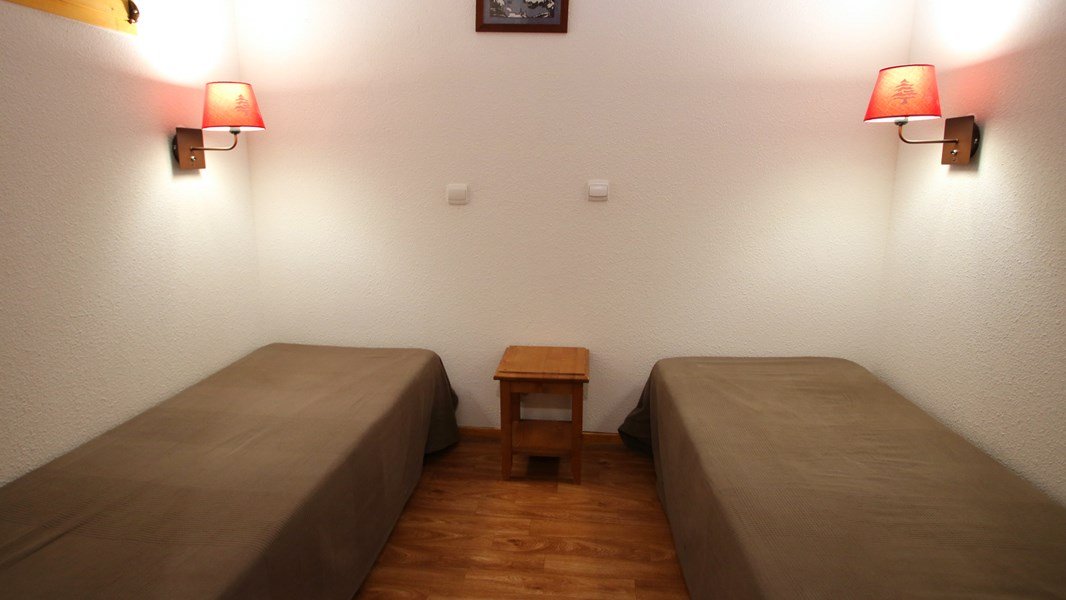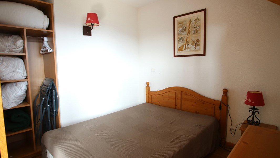 - Couchages : une chambre avec lit double (140x190), une chambre cabine avec deux lits simples (80x190) et étagères de rangement. Lits équipés de couettes et oreillers 60x60.