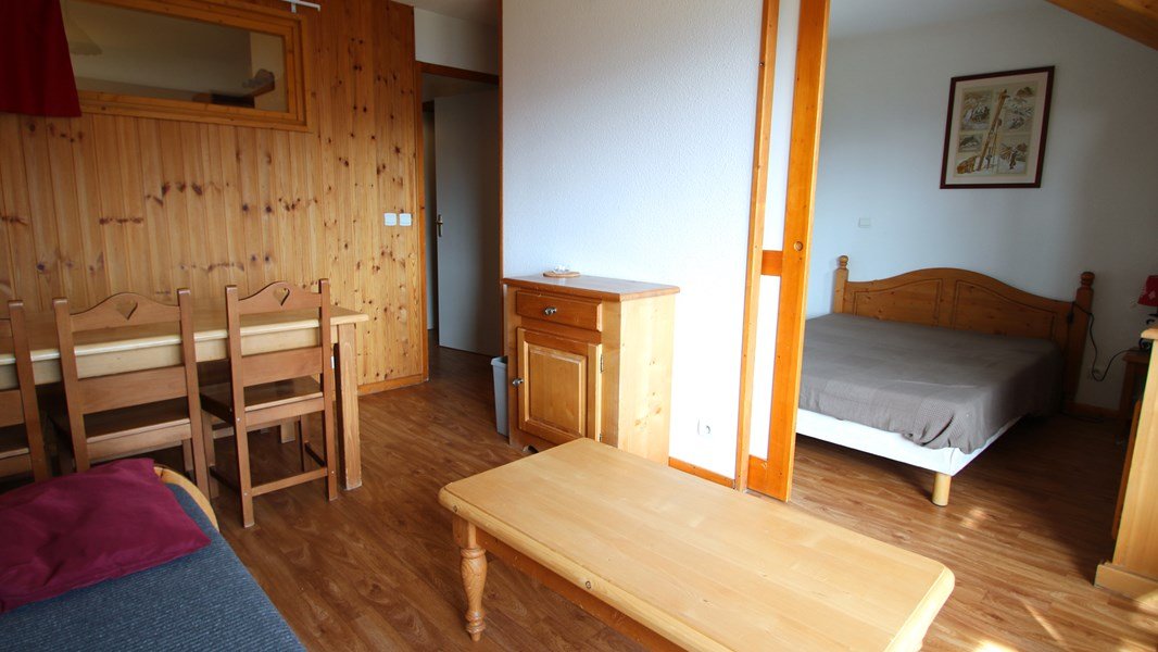 - Séjour avec canapé lit gigogne convertible (2/80x190 ou 160x190), table à manger, tv écran plat et balcon équipé d’une table et deux chaises.