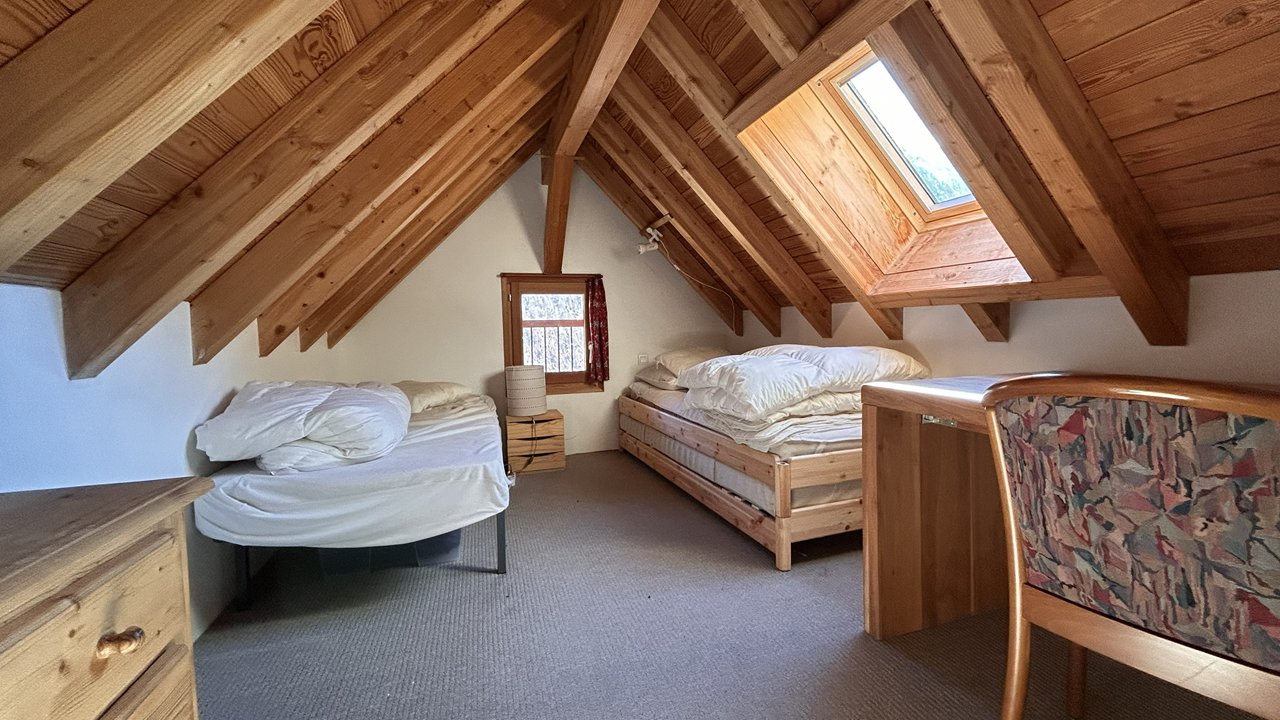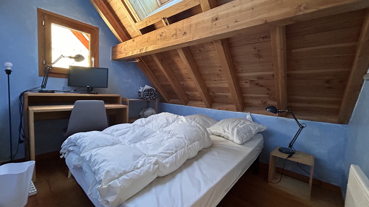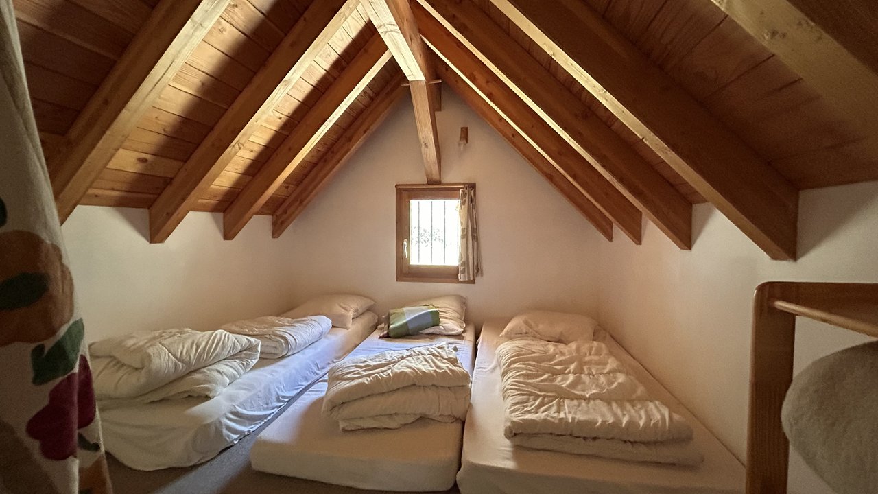 Chambre 5 (mezzanine) : trois matelas simples, idéale en dortoir pour enfants