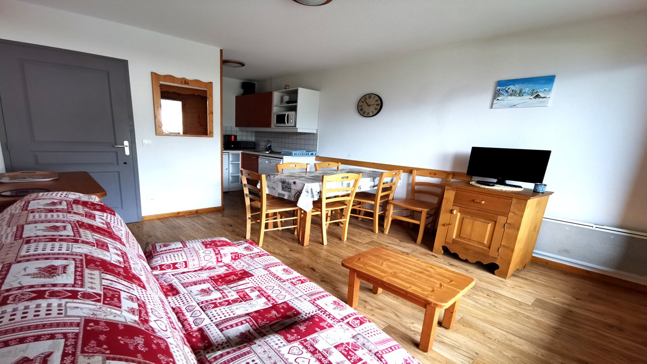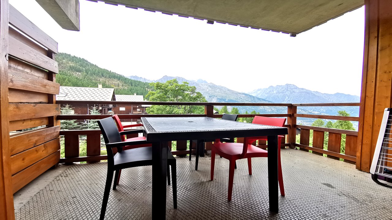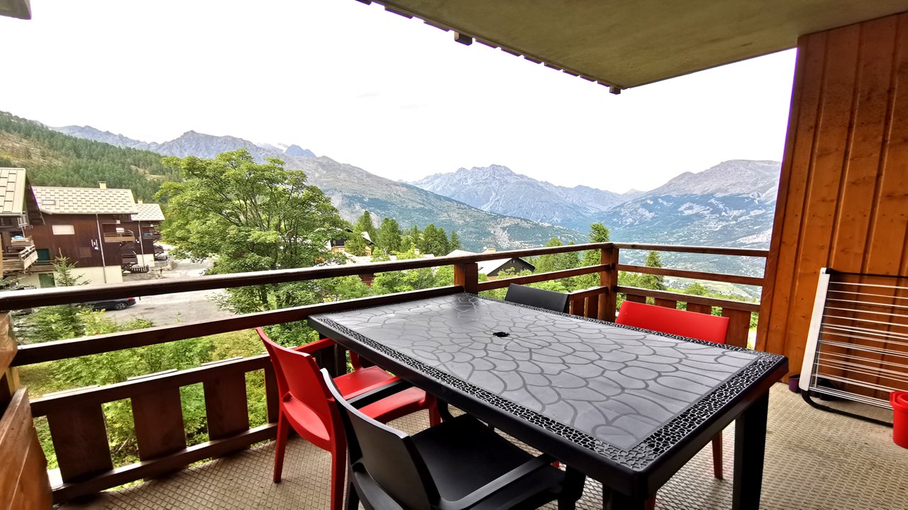 Au cœur des pistes de Puy-Saint-Vincent, location de vacances à 1800m d'un joli appartement de bon standing avec terrasse donnant vue sur les montagnes, meublé et équipé pour 4/6 personnes.