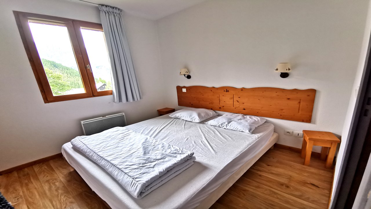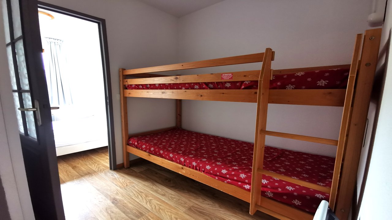 - Couchages : une chambre avec lit double, un coin montagne avec lit superposé, penderie et placard. Salle de bain et WC indépendant.